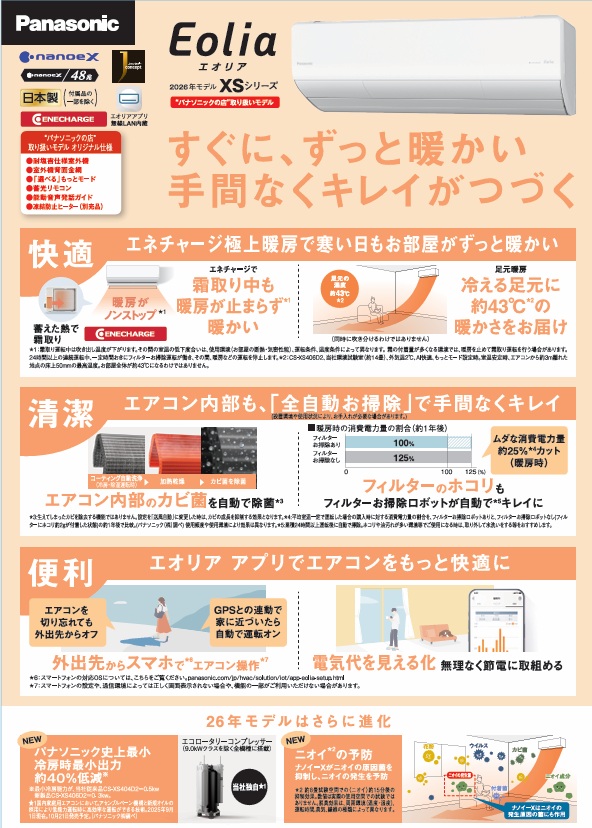 対象機種:パナソニック製エオリア 2026年モデルXSシリーズ