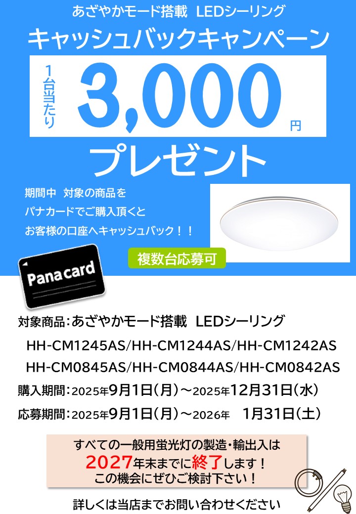 3. 知らなきゃ損🧐メーカーキャッシュバック+安心サポート✨この秋に買うと断然お得! 【パナソニック・家電・エアコン・LED・照明・ビストロ・炊飯器・岡崎市・矢作町・柱町・庄司田・中島町・電気屋】