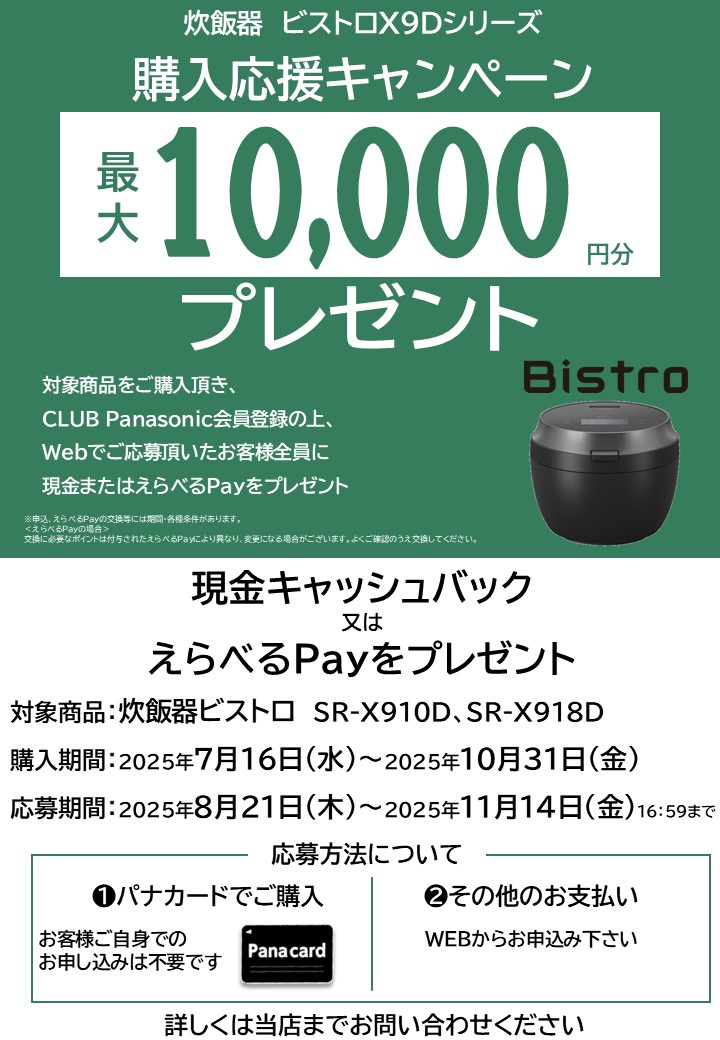 知らなきゃ損🧐メーカーキャッシュバック+安心サポート✨この秋に買うと断然お得! 【パナソニック・家電・エアコン・LED・照明・ビストロ・炊飯器・岡崎市・矢作町・柱町・庄司田・中島町・電気屋】