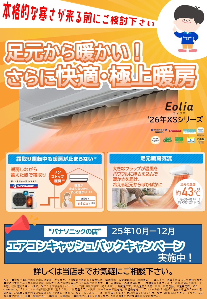 高齢のご両親にも安心!火を使わないあったか暖房に変えるタイミング♪ 【パナソニック・エオリア・エアコン・暖房・冬寒い・買い替え・高齢の親へ・岡崎市・電気屋】